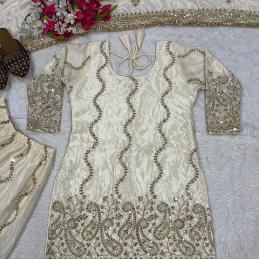 New Bollywood wardrobe team french chinon silk ready made suit with sequin embroidery work