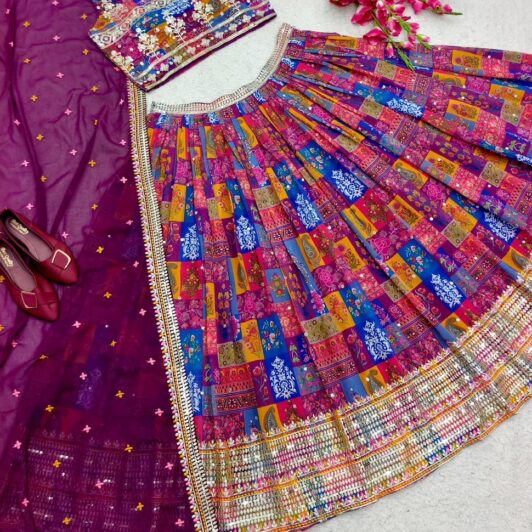 New Bollywood wardrobe team georgette digital printed lehenga with sequin work