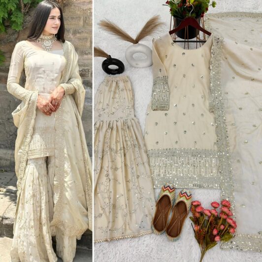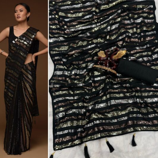New Bollywood wardrobe team georgette saree with sequin embroidery