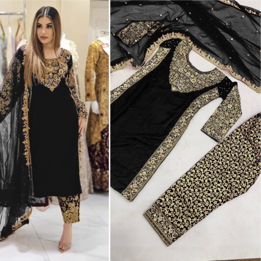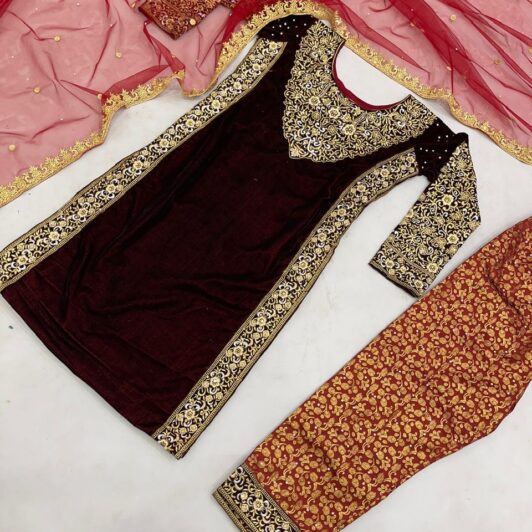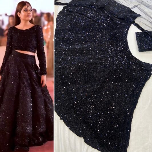 New Bollywood wardrobe team velvet lehenga with sequin embroidery work