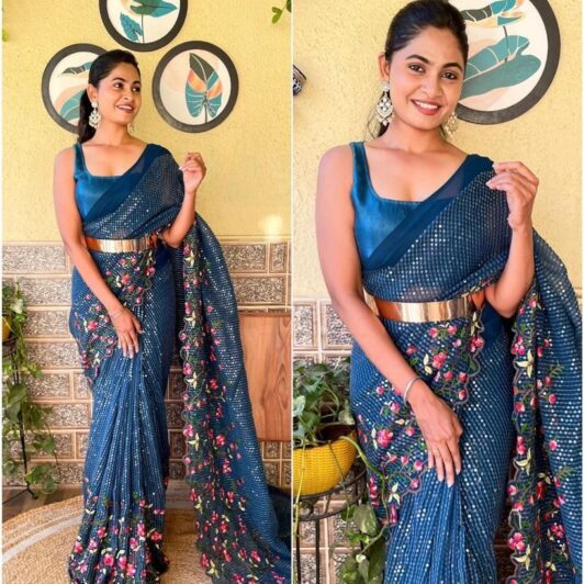 New Bollywood wardrobe team georgette ready to wear sequin and multi thread work saree