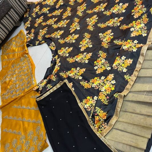 New Bollywood wardrobe team zari satin silk digital printed lehenga