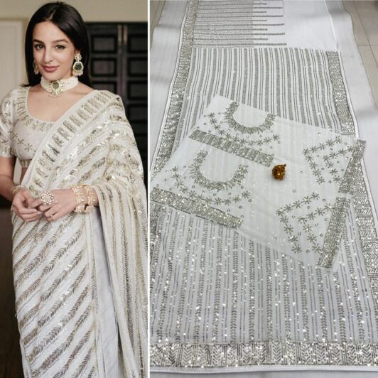 New Bollywood wardrobe team georgette one minute ready to wear sequin saree