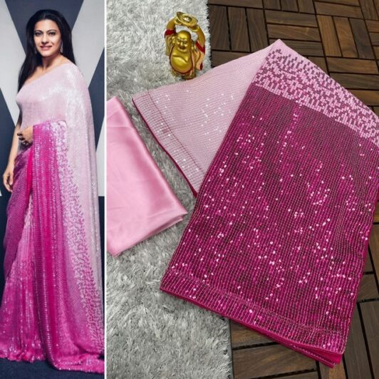 New Bollywood wardrobe team Kajol Manish Malhotra georgette dual shade sequin saree