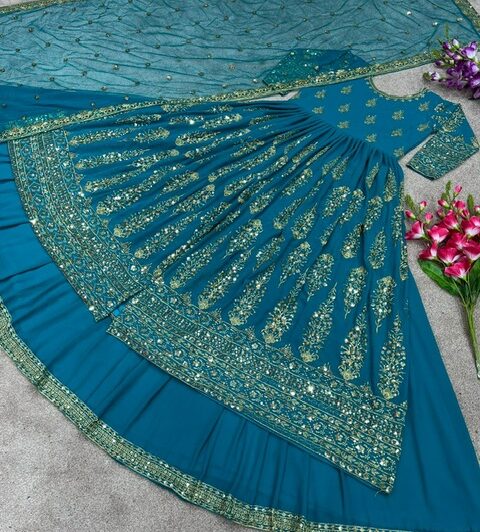 New Bollywood wardrobe team Georgette lehenga with sequin and thread embroidery work