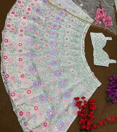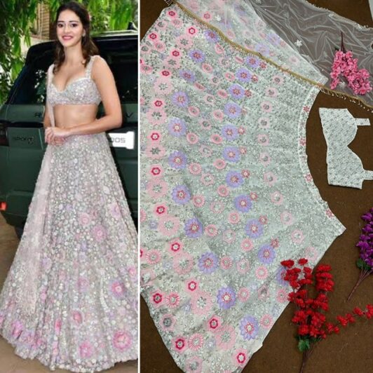 New Bollywood wardrobe team ready made soft net lehenga with thread embroidery work