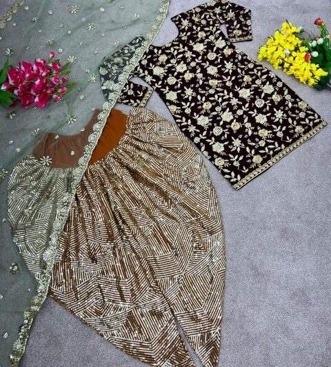 New Bollywood wardrobe team ready made georgette sequin coding work gown