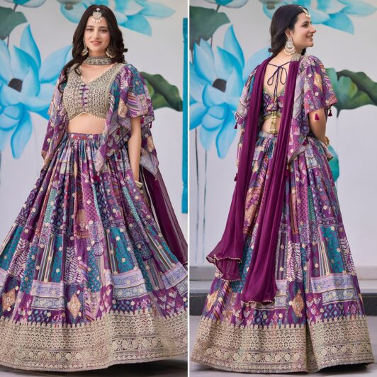 PURPLE CHINON SILK LEHENGA PREORDER SPECIAL ZEE7050PRL