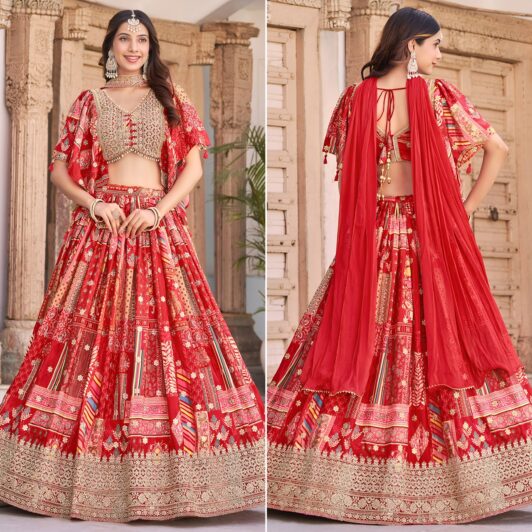 RED CHINON SILK LEHENGA PREORDER SPECIAL ZEE7050RED