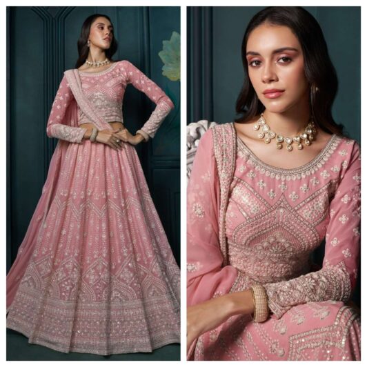 PINK WHITE GEORGETTE LEHENGA PREORDER SPECIAL ALI1080