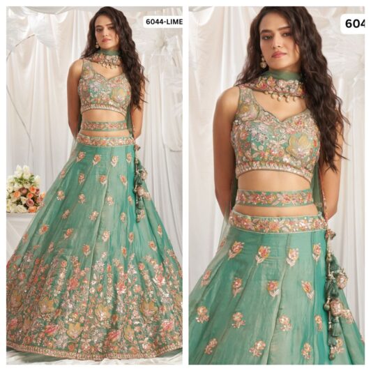 LIME GREEN ARMANI SILK LEHENGA PREORDER SPECIAL HOP6044LG