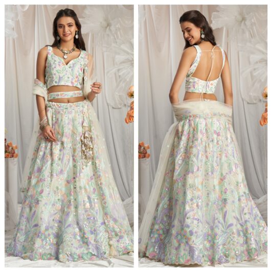 CREAM SOFT NET SEQUIN LEHENGA PREORDER SPECIAL HOP6058CRM