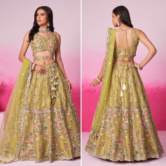 MEHENDI GREEN SOFT NET LEHENGA PREORDER SPECIAL A1084