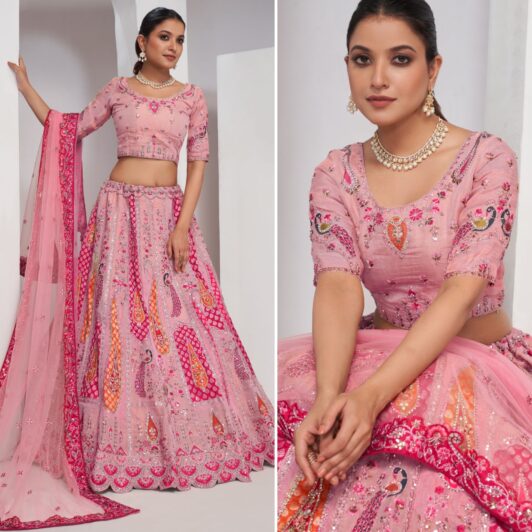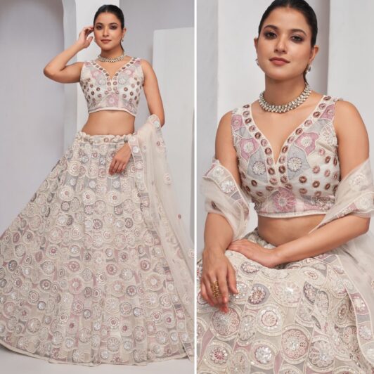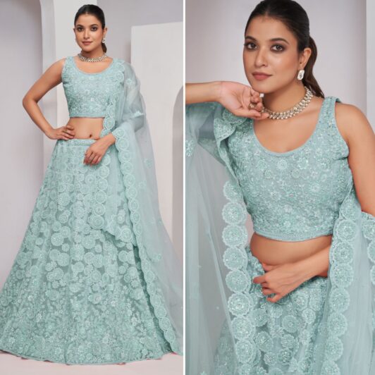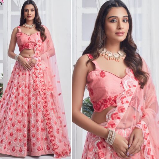 New premium range soft net lehenga with sequin, dori, zarkan and thread embroidery work