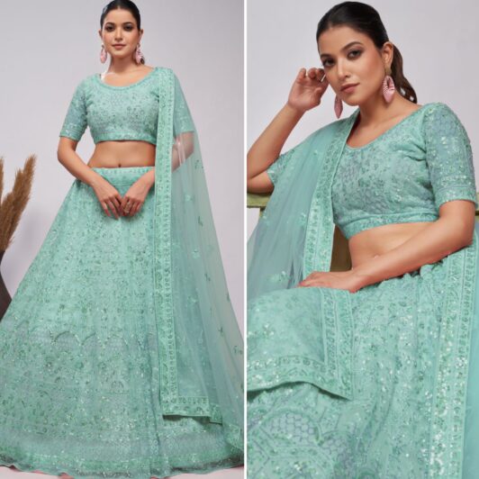 New designer soft net lehenga with multiple sequin and thread embroidery work