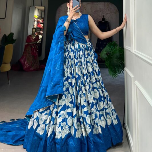 New designer chiffon lehenga with sequin and thread embroidery work
