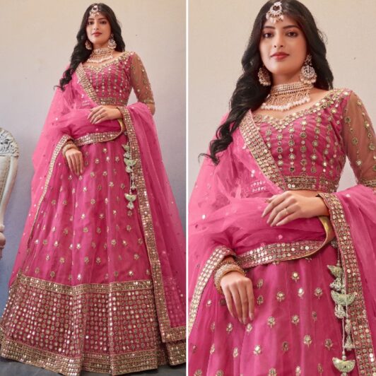 New designer chinnon silk lehenga with sequin and thread embroidery work