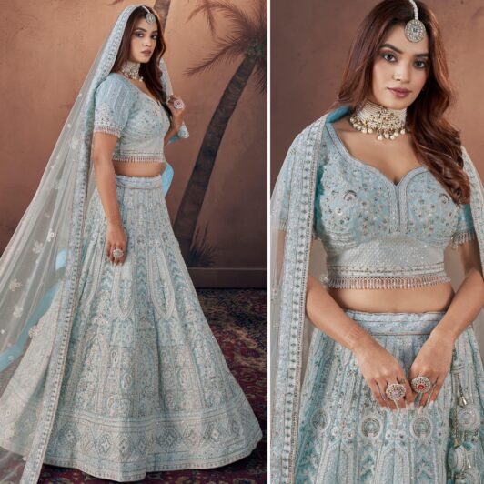 New premium range net lehenga with handwork embroidery