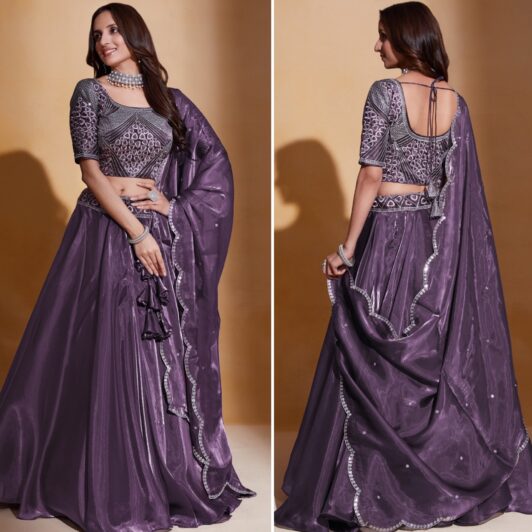 New designer organza silk lehenha with thread and sequin embroidery work