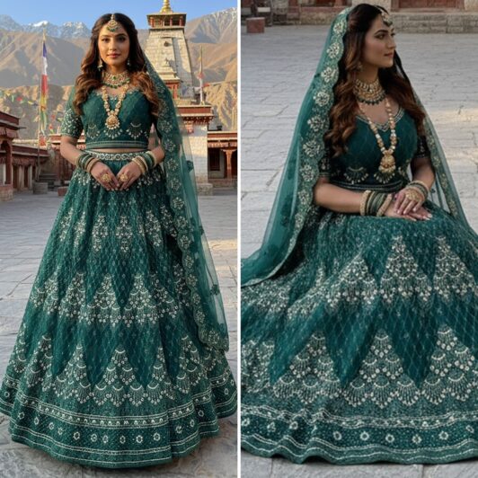 GREEN ORGANZA SILK LEHENGA PREORDER SPECIAL HOP6287GRN