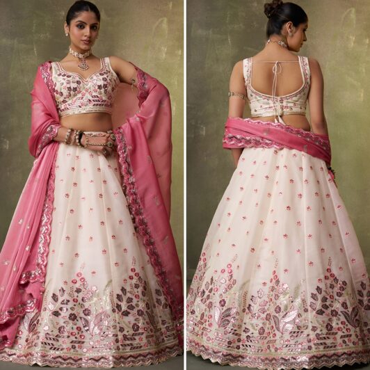CRÈME ORGANZA SILK LEHENGA PREORDER SPECIAL HOP6287CRM