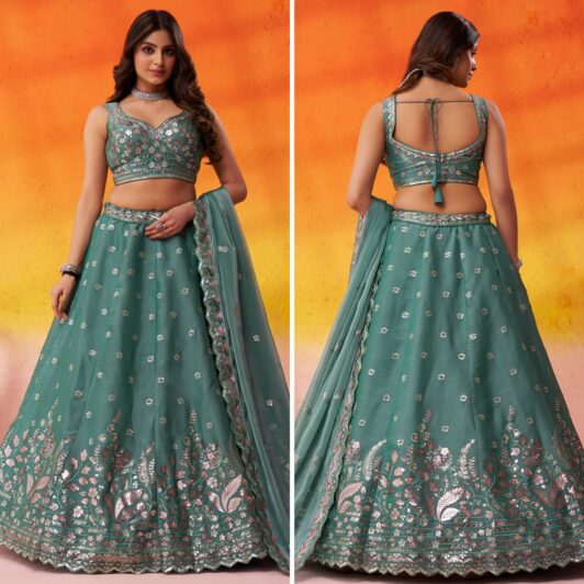 GREEN ORGANZA SILK LEHENGA PREORDER SPECIAL HOP6287GRN