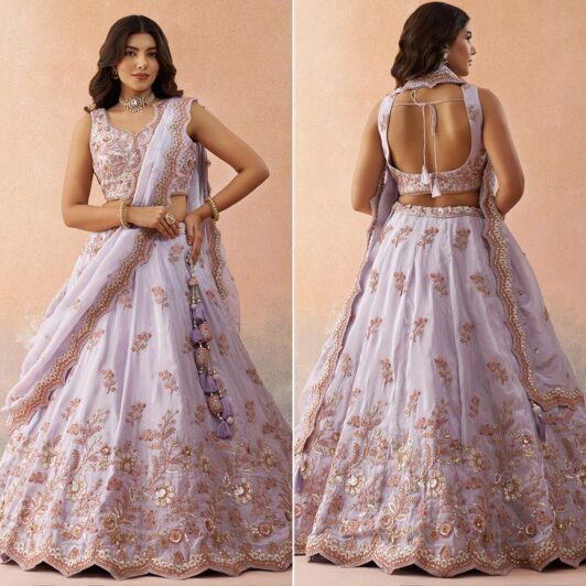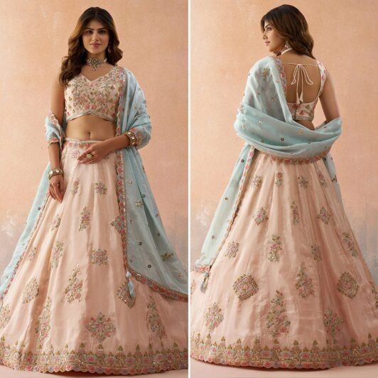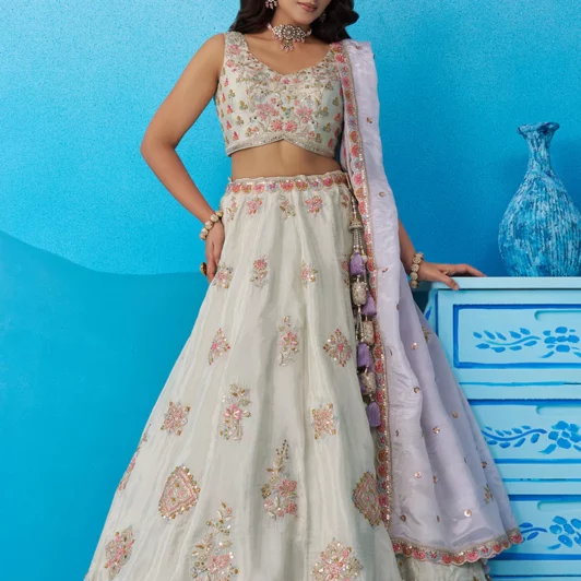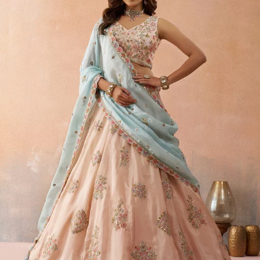New designer tissue silk lehenga with sequin and zari embroidery work