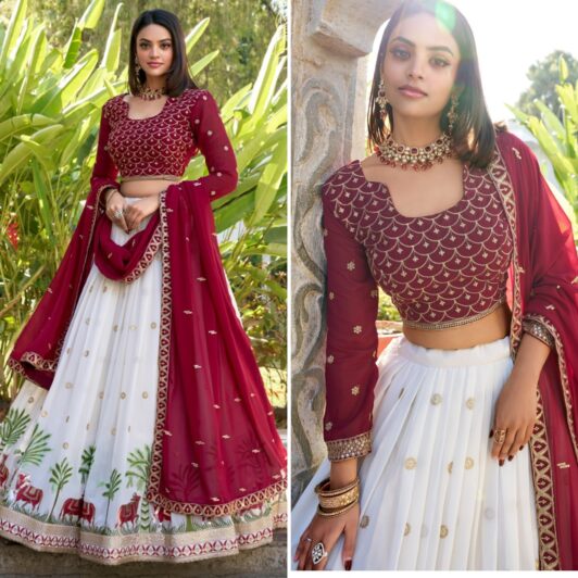 WHITE GEORGETTE SEQUIN LEHENGA PREORDER SPECIAL LNB1412WHT