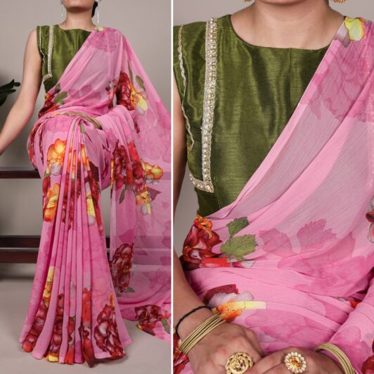 BLACK CHIFFON FLORAL SAREE PREORDER SPECIAL LNB7009BLK