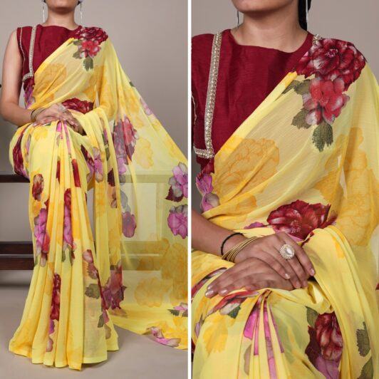 YELLOW CHIFFON FLORAL SAREE PREORDER SPECIAL LNB7009YLW