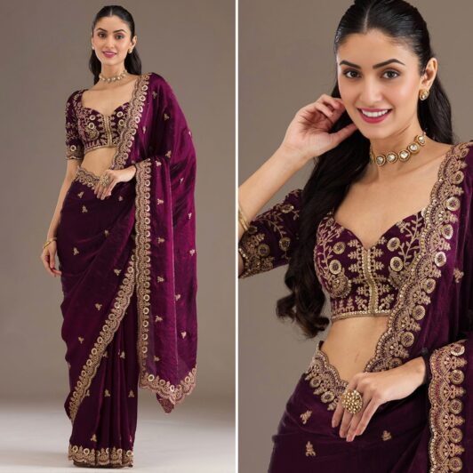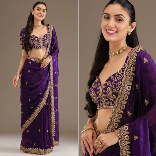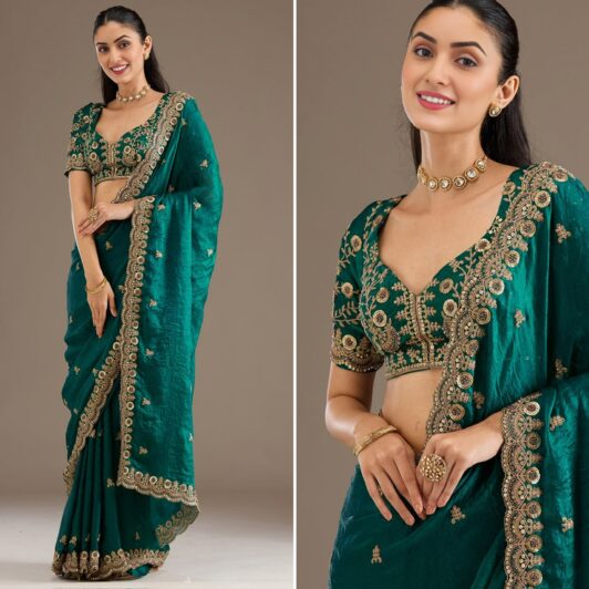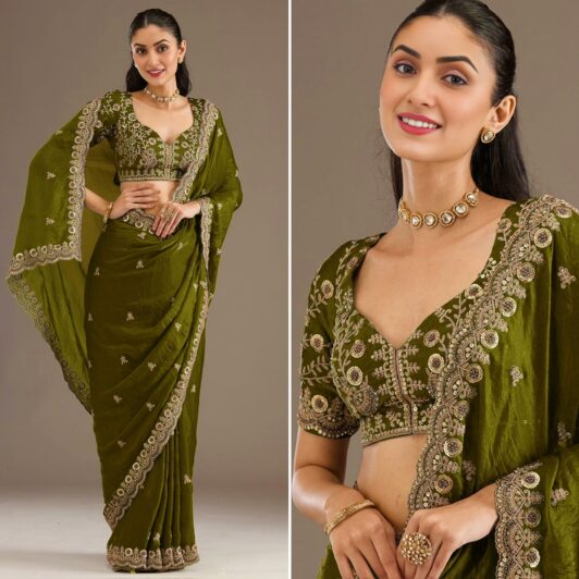 New designer organza silk saree with heavy embroidery work