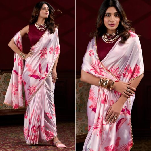 LIGHT PINK FLORAL SAREE PREORDER SPECIAL LNB702LPI