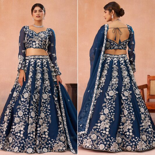 BLUE ORGANZA SILK LEHENGA PREORDER SPECIAL HOP6265BLU