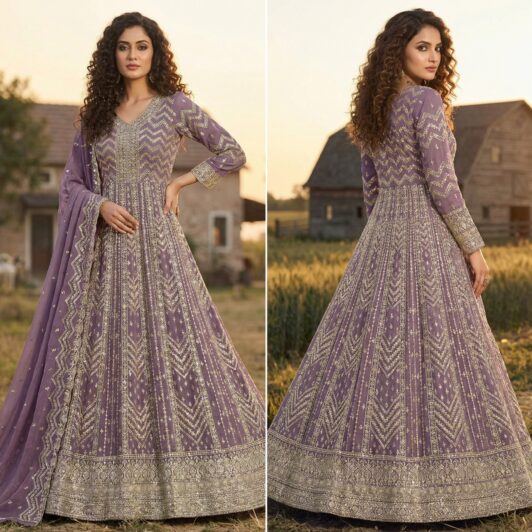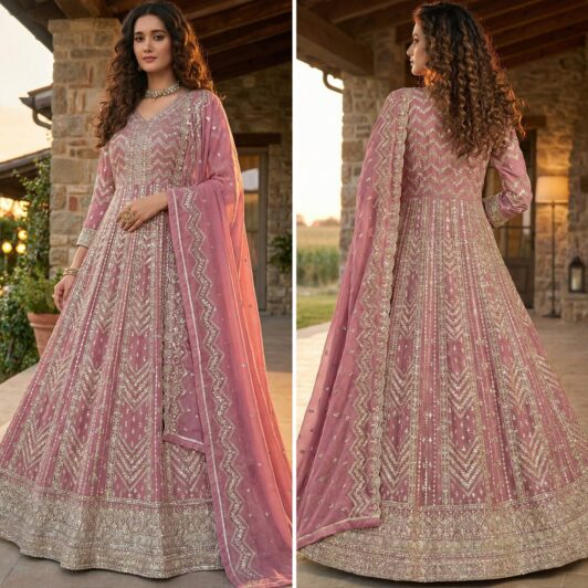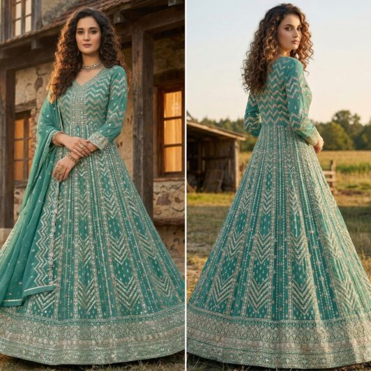 New designer ready made georgette gown with heavy zari, thread and sequin embroidery work