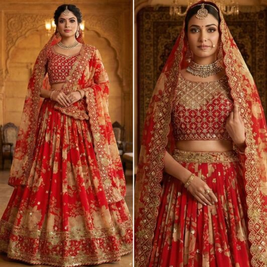 RED GEORGETTE FLORAL LEHENGA PREORDER SPECIAL SEN7107
