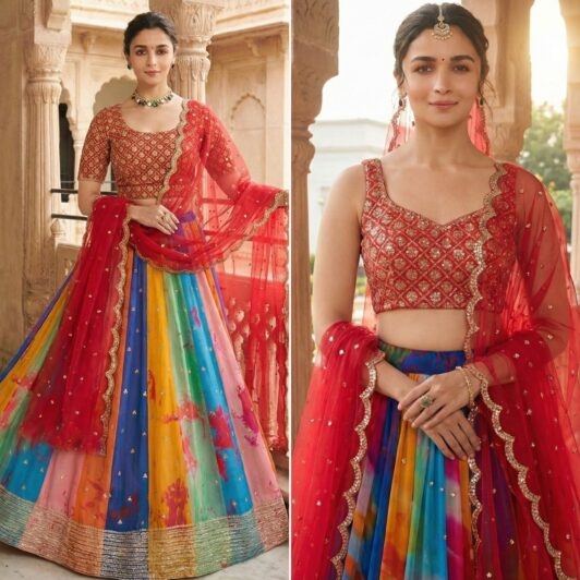 BEIGE TISSUE SILK LEHENGA PREORDER SPECIAL HOP6228RED
