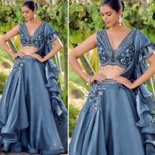 New designer ready made silk crop top lehenga