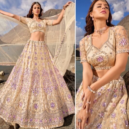 New designer premium range pure soft net lehenga with heavy embroidery work