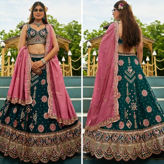 GREEN ORGANZA SEQUINS LEHENGA PREORDER SPECIAL HOP6187GRN