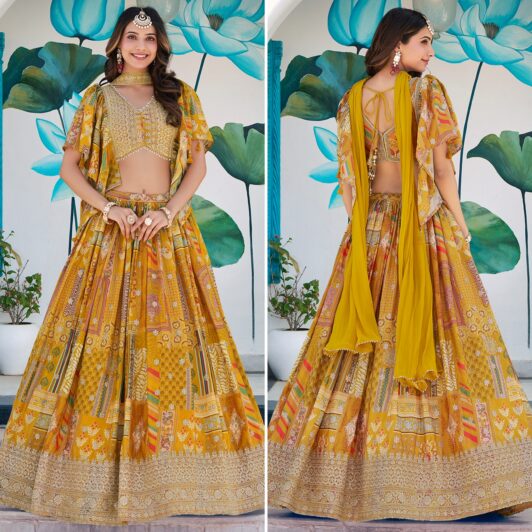 YELLOW CHINON SILK LEHENGA PREORDER SPECIAL ZEE7050YEL