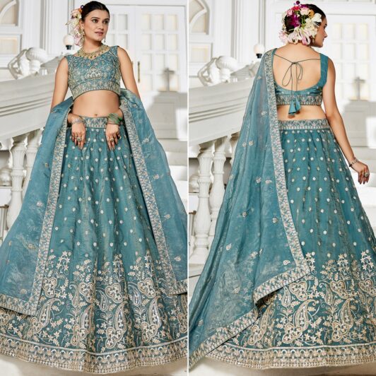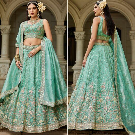 SEA GREEN TISSUE SILK SEQUINS LEHENGA PREORDER SPECIAL HOP6188SG