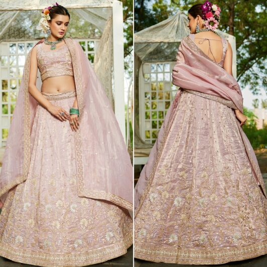 PINK TISSUE SILK SEQUINS LEHENGA PREORDER SPECIAL HOP6188PNK