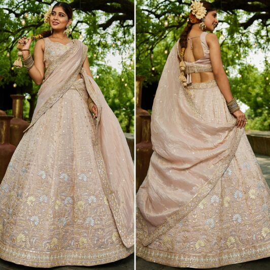 NUDE TISSUE SILK SEQUINS LEHENGA PREORDER SPECIAL HOP6189NUD