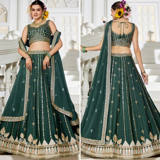 GREEN GEORGETTE SEQUINS LEHENGA PREORDER SPECIAL HOP6191GRN