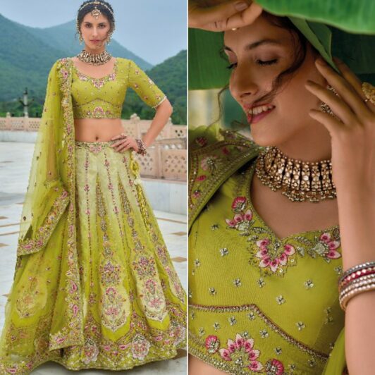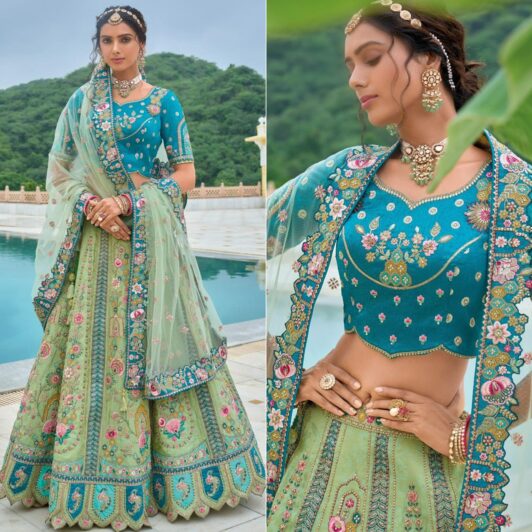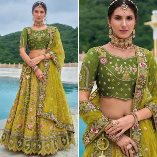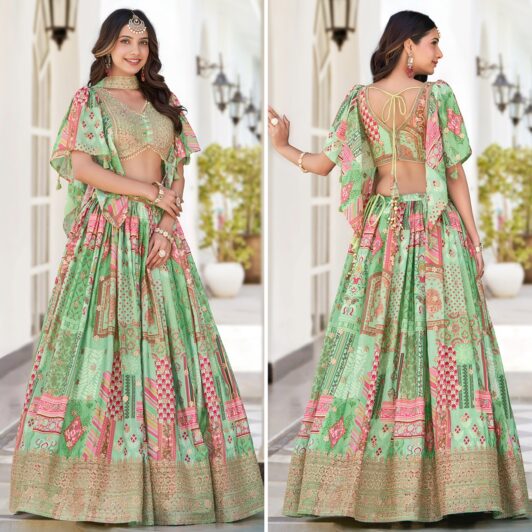 GREEN CHINON SILK LEHENGA PREORDER SPECIAL ZEE7050GRN