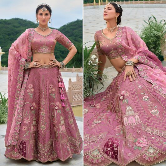 PINK SEQUIN AND THREAD SILK LEHENGA PREORDER SPECIAL LNB1237PNK