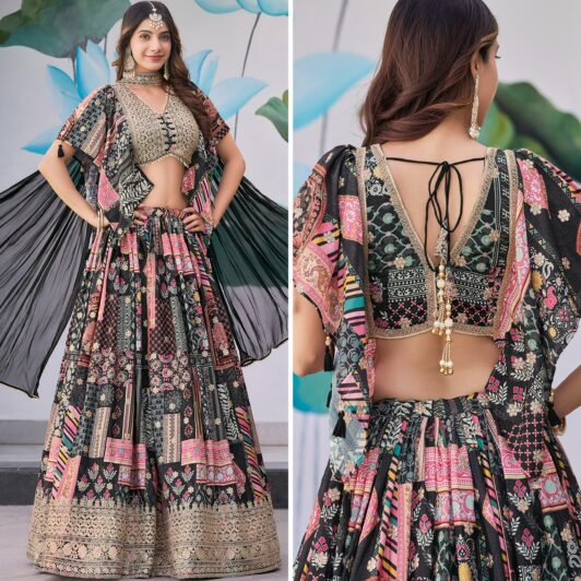 BLACK CHINON SILK LEHENGA PREORDER SPECIAL ZEE7050BLK