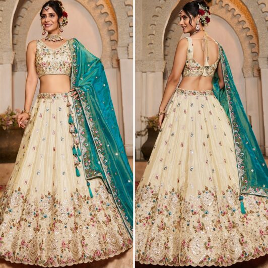 CREAM SEQUIN LEHENGA PREORDER SPECIAL HOP6126TEL