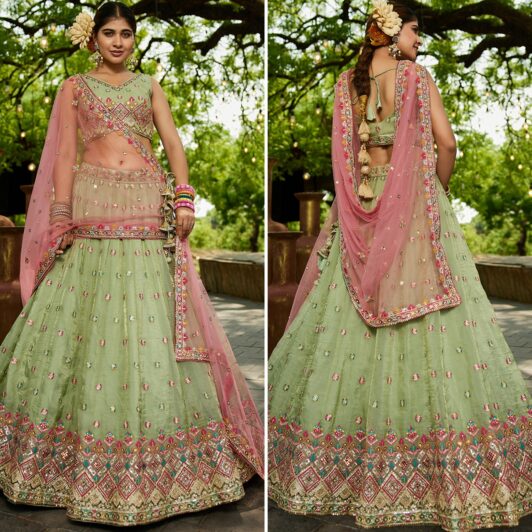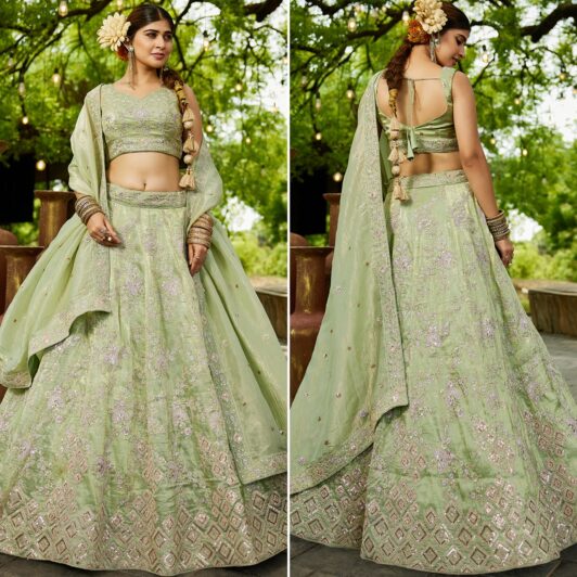 LIME GREEN SEQUIN LEHENGA PREORDER SPECIAL HOP6141LG