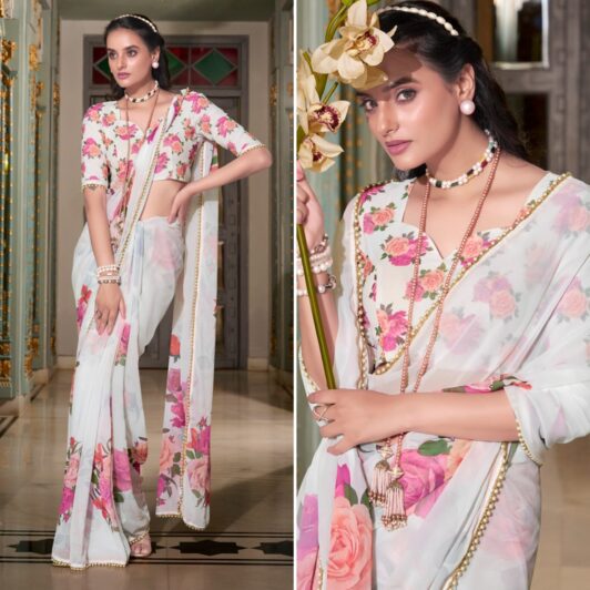 WHITE FLORAL SAREE PREORDER SPECIAL LNB7007WHT